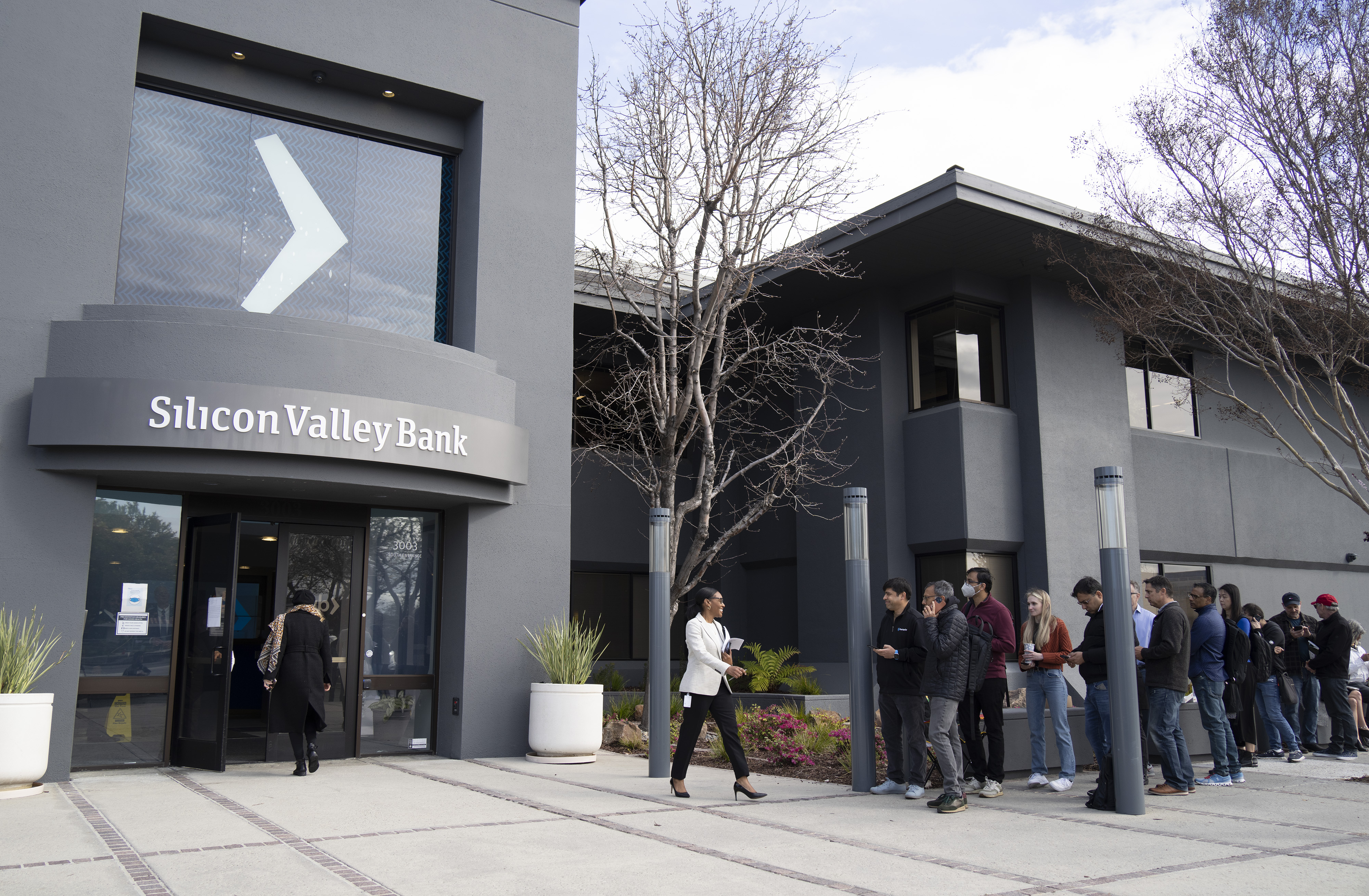 3月13日,客户在好意思国加利福尼亚州圣克拉拉市硅谷银行总部外列队等候办理业务。(新华社发,李开国摄)