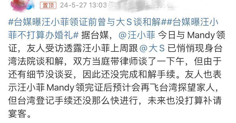 另外有东谈主还示意,汪小菲和Mandy瞻望会乘坐飞机前去台湾省拜谒家东谈主,仅仅手续办理没那么快,并且他们莫得贪图补请请客。