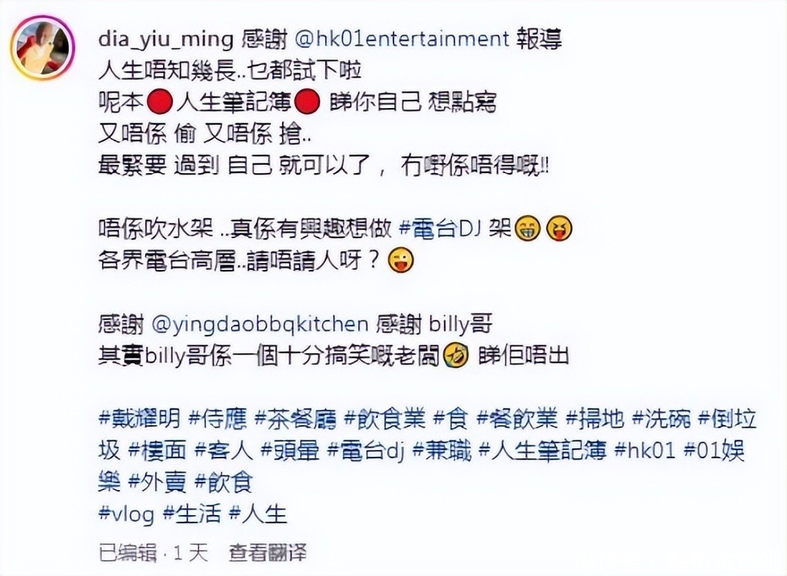 环球网:《TVB演员戴耀明被曝在餐厅打工,送餐、洗碗、倒垃圾……本东谈主回复》